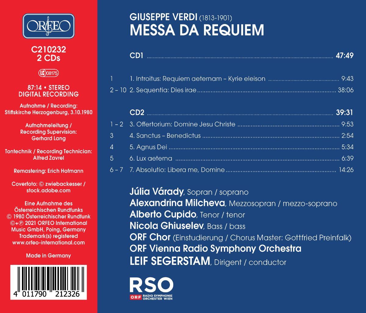 VERDI:MESSA DA REQUIEM/VARADY/MILCHEVA/SEGERSTAM 2CD