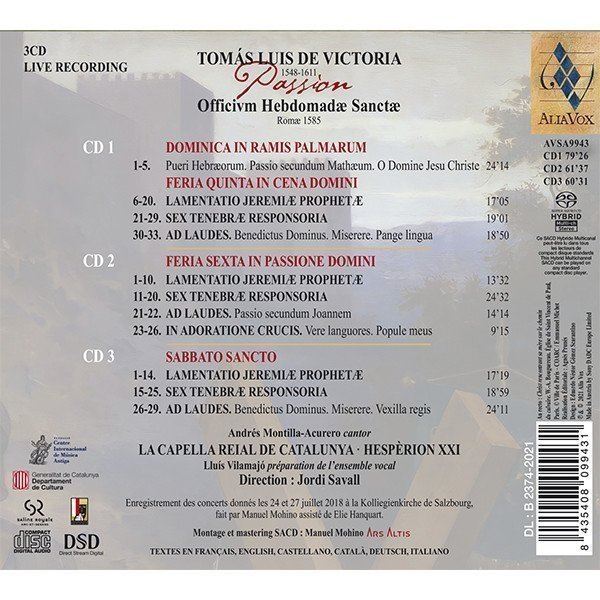 VICTORIA:PASSION OFFICIUM HEBDOMADAE SANCTAE/SAVALL 3CD iz kategorije klasika in slovenska narodna sodi med odlične cd.