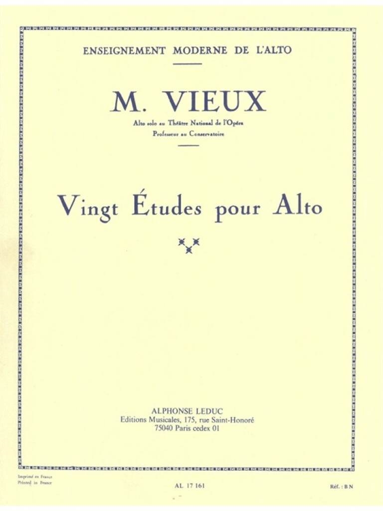VIEUX M:VINGT ETUDES POUR ALTO (VIOLA) iz kategorije etude sodi med odlične viola.AL17161 Leta 1927 objavljeno 20 študij za violo je najbolj znano delo Mauricea Vieuxa (1884-1951) ...