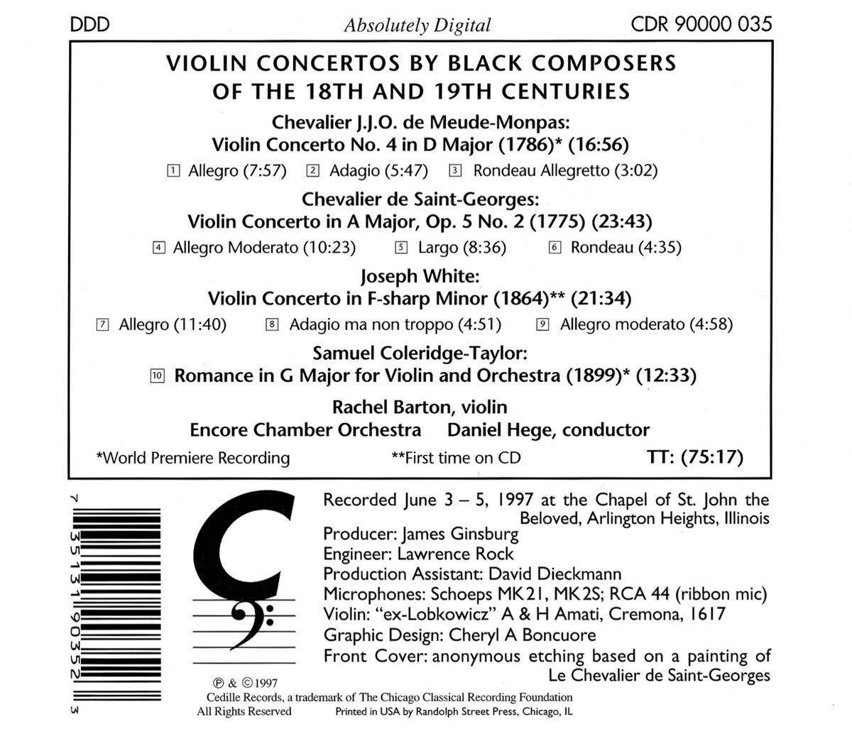 VIOLIN CONCERTOS BY BLACK COMPOSERS OF THE 18TH & 19TH CENTURIES