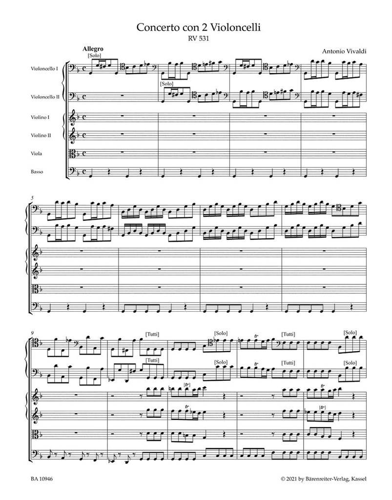 VIVALDI:CONCERTO FOR TWO VIOLONCELLOS,STRINGS AND BASSO CON.RV531 G-MOLL SCORE iz kategorije partiture sodi med odlične Notna literatura.