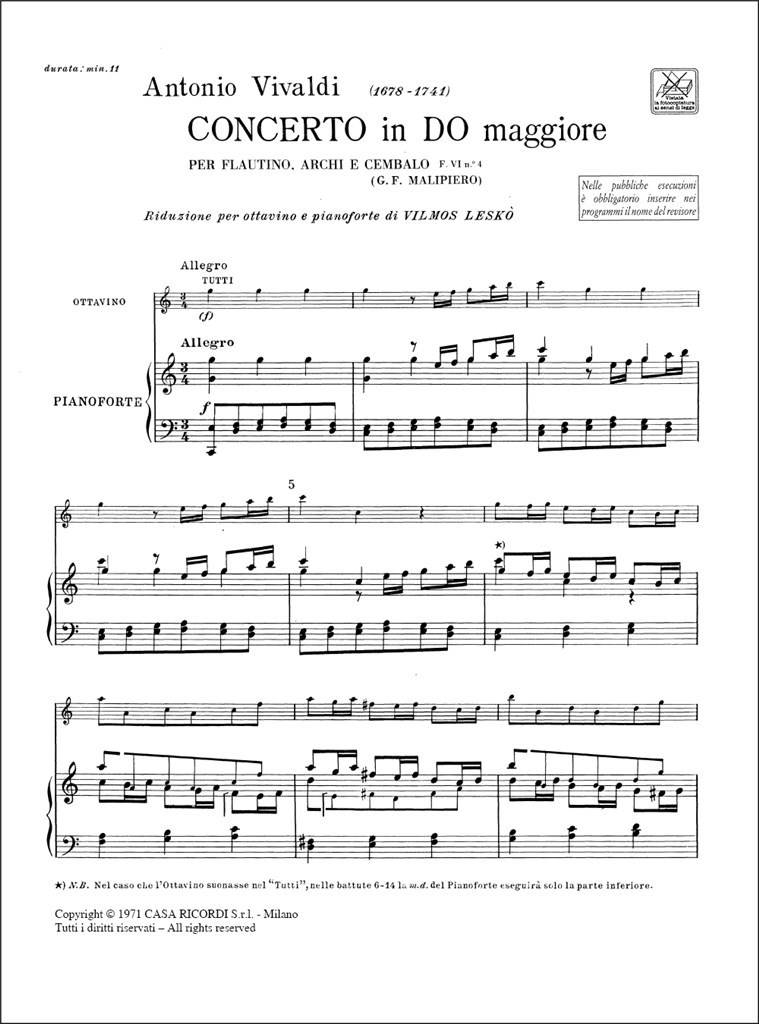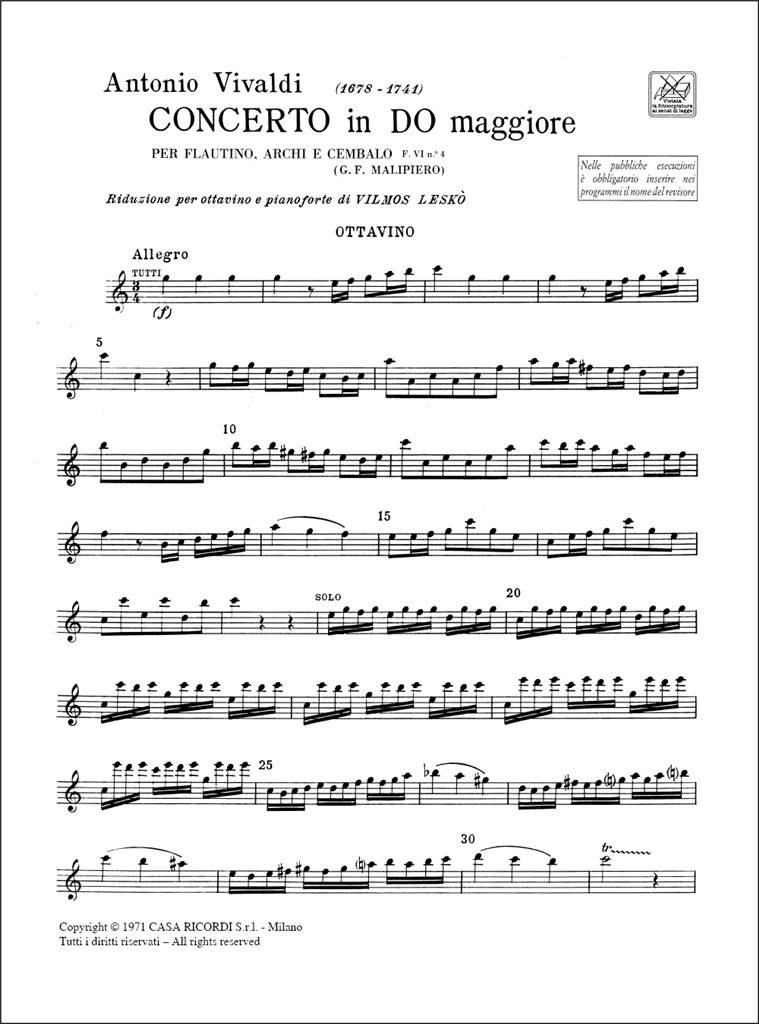 VIVALDI:CONCERTO IN DO MAGGIORE F.VI 4 iz kategorije skladbe sodi med odlične flavta.