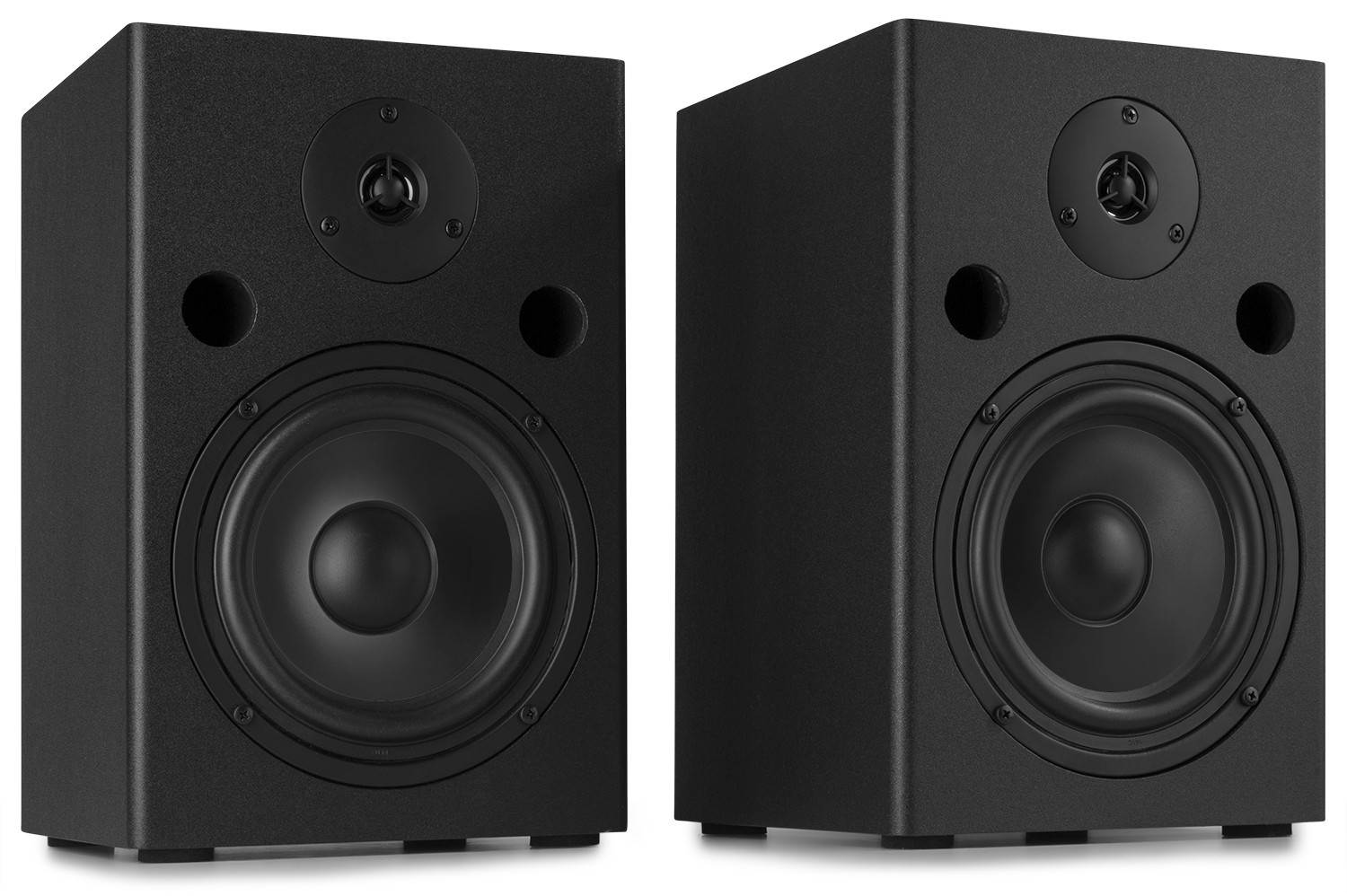 These SM Active Studio Monitors are professional quality studio monitors and also suitable for multimedia use. These speakers are designed to produce a flat frequency response for (home) studio recording, mixing, and mastering duties. Volume, bass and treble controls are located on the back panel for adjustments based on your personal preferences. The SM-series features analog amplifiers that are built into the left speaker, while the right speaker is passive so setup is simple. Just plug the left speaker into AC power and connect the included speaker wire from left to right. These Vonyx SM Active Studio Monitor Speakers creates a new performance level in affordable studio monitors.