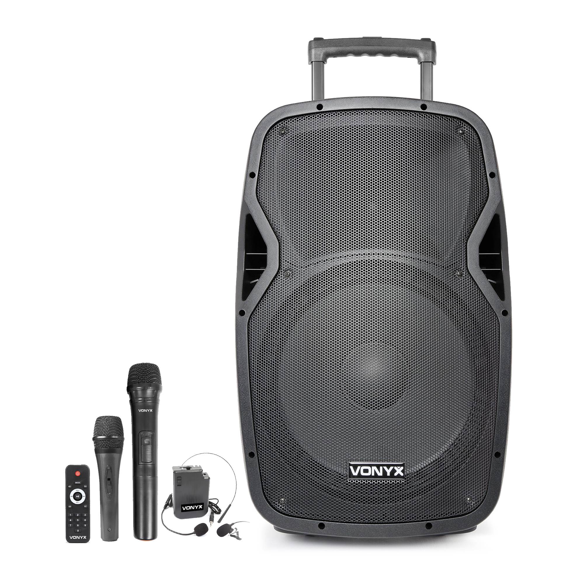 VONYX PRENOSNO BATER.OZVOČENJE AP1500PA 1X ROČNI, 1XNAGLAVNI, 1X ŽIČNI MIKROFON iz kategorije akumulatorsko ozvočenje sodi med odlične Ozvočenja. 15" 800W prenosni zvočnik ...