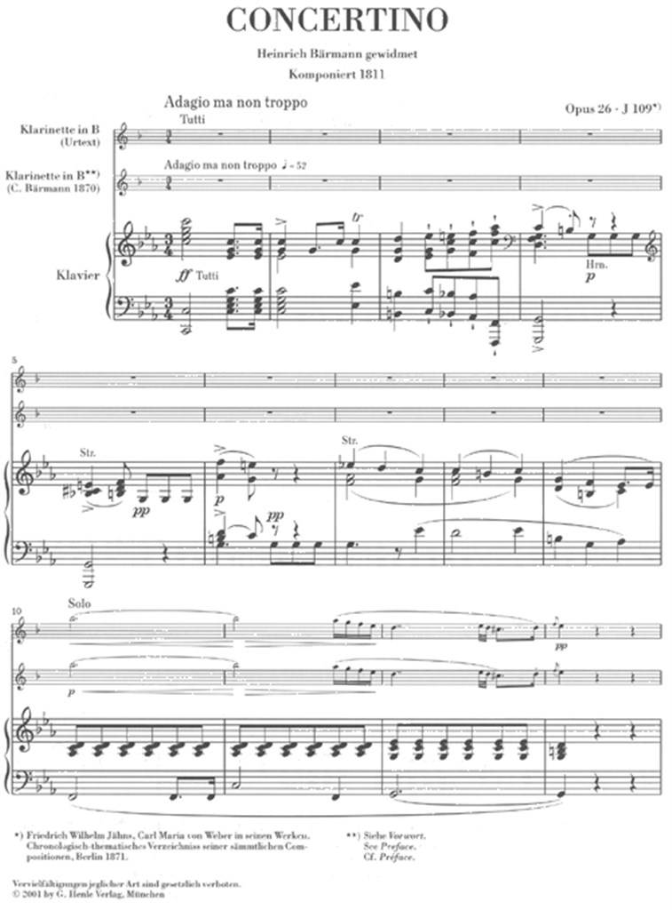 WEBER:CONCERTINO OP.26 CLARINET AND PIANO iz kategorije skladbe sodi med odlične klarinet.