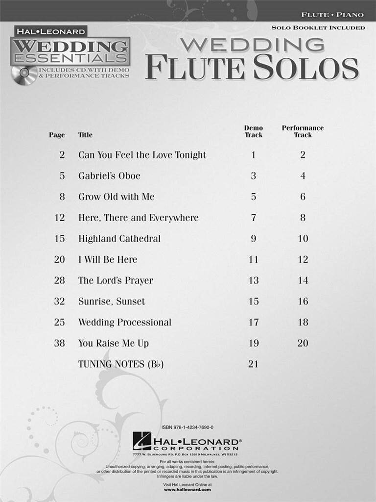 WEDDING FLUTE SOLOS FOR FLUTE AND PIANO +AUDIO ACCESS iz kategorije zabavna glasba sodi med odlične flavta.HL00842457 1. Can You Feel the Love Tonight 2. Gabriel's oboe 3. The Lor ...