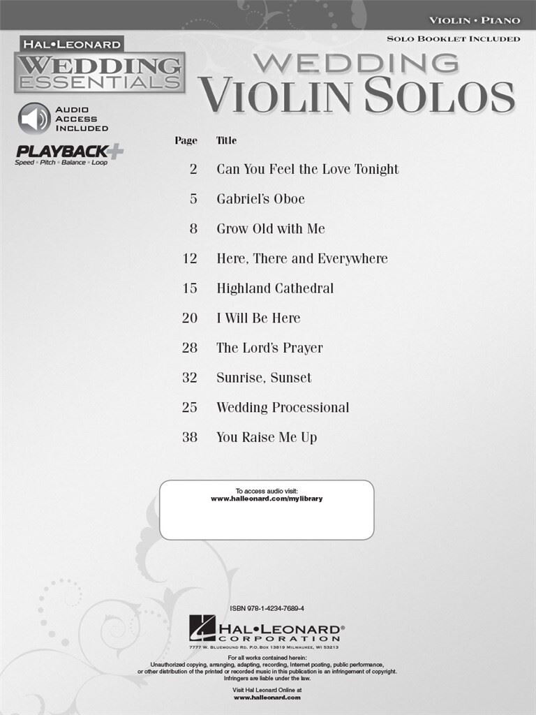 WEDDING VIOLIN SOLOS VIOLIN AND PIANO + AUDIO ACCESS iz kategorije zabavna glasba sodi med odlične violina.HL00842456 1. Can You Feel the Love Tonight 2. Gabriel's oboe 3. The Lor ...