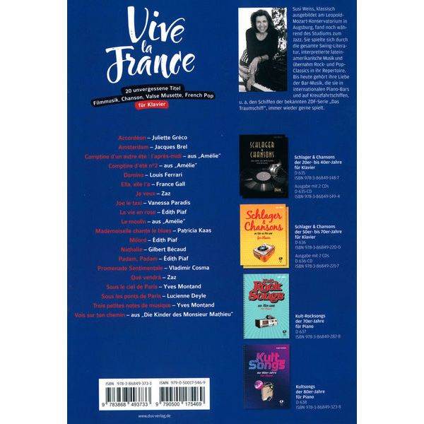 WEISS:VIVE LA FRANCE FUR KLAVIER iz kategorije zabavna glasba sodi med odlične klavir.DUX639 Accordéon (Juliette Gréco) Amsterdam (Jacques Brel) Comptine d’un autre été : l’apre ...