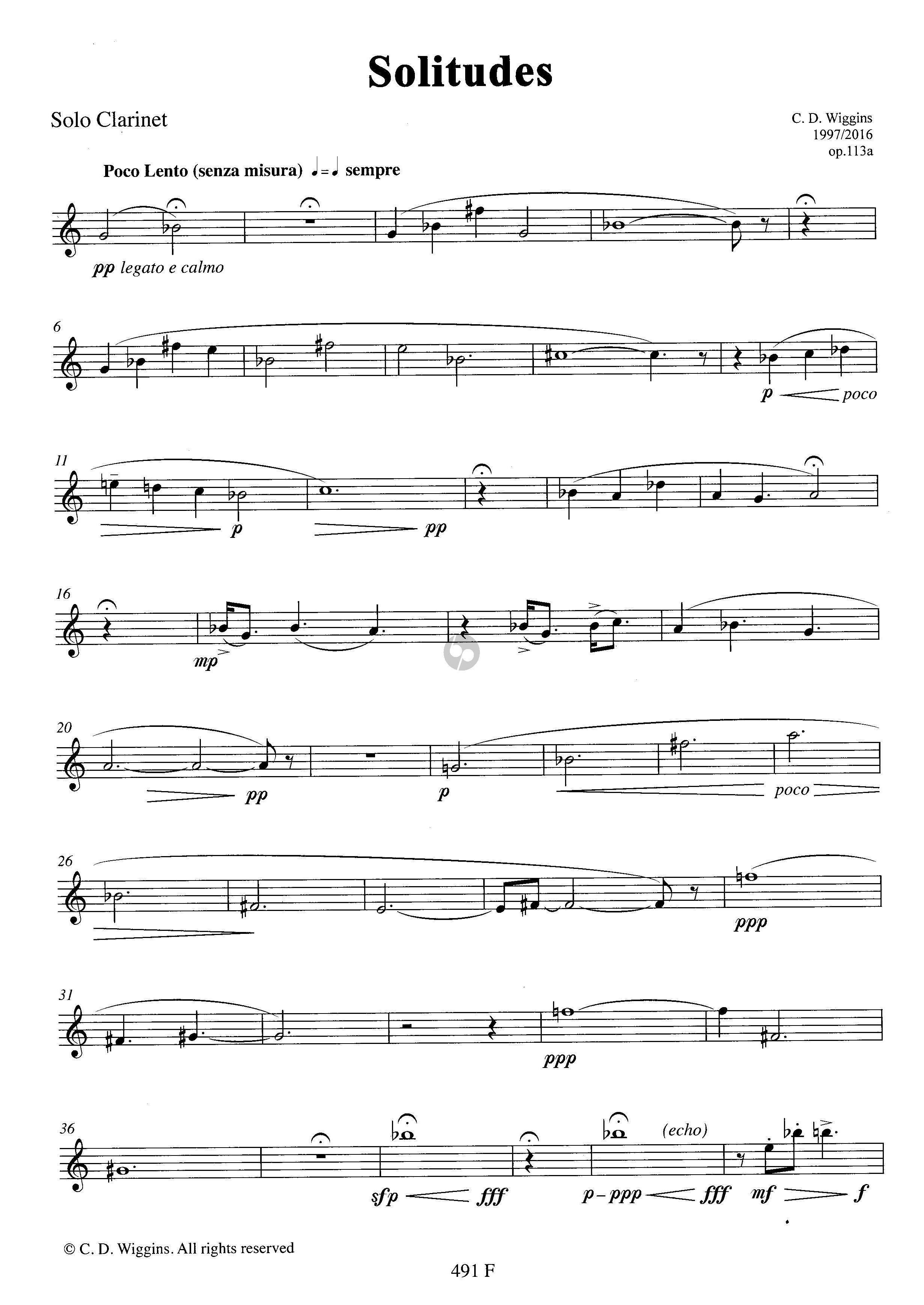 WIGGINS:SOLITUDES OP.113A FOR SOLO CLARINET