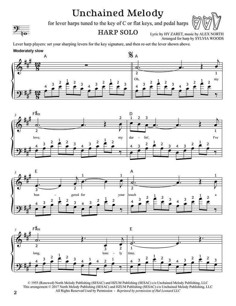WOODS S.:UNCHAINED MELODY iz kategorije skladbe sodi med odlične harfa.HL00258209 Klasična pop uspešnica, ki jo je priredila Sylvia Woods za harfo solo in za harfo ter glas ali mel ...