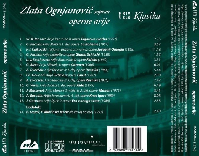 ZLATA OGNJANOVIČ-OPERNE ARIJE iz kategorije klasika in slovenska narodna sodi med odlične cd.