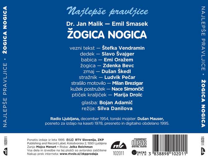 ŽOGICA NOGICA/JAN MALIK-EMIL SMASEK PRAVLJICA iz kategorije otroški sodi med odlične cd.ŠTEFKA VENDRAMIN SLAVO ŠVAJGER EMI ORAŽEM ZDENKA BEVC DUŠAN ŠKEDL LUDVIK PEČAR MILAN BREZIGA ...
