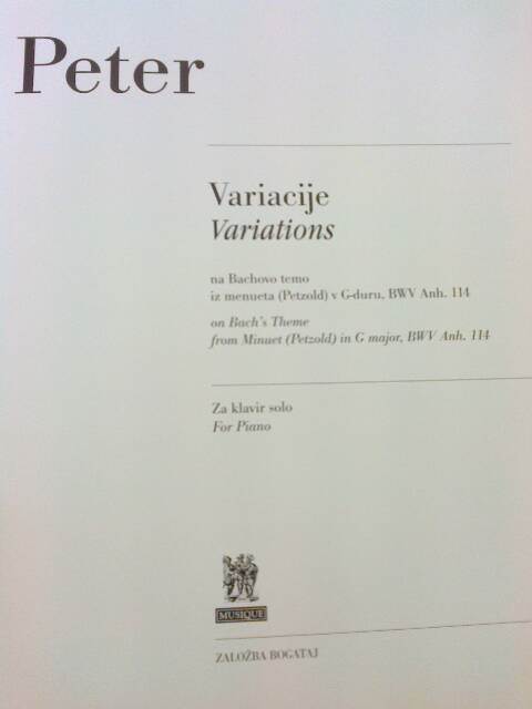 ZOLTAN PETER:VARIACIJE NA BACHOVO TEMO IZ MENUETA V G-DURU BWH ANH.114 iz kategorije skladbe, sodi med odlične klavir. Variacije na Bachovo temo iz menueta (Petzold) v G-duru, BWV ...