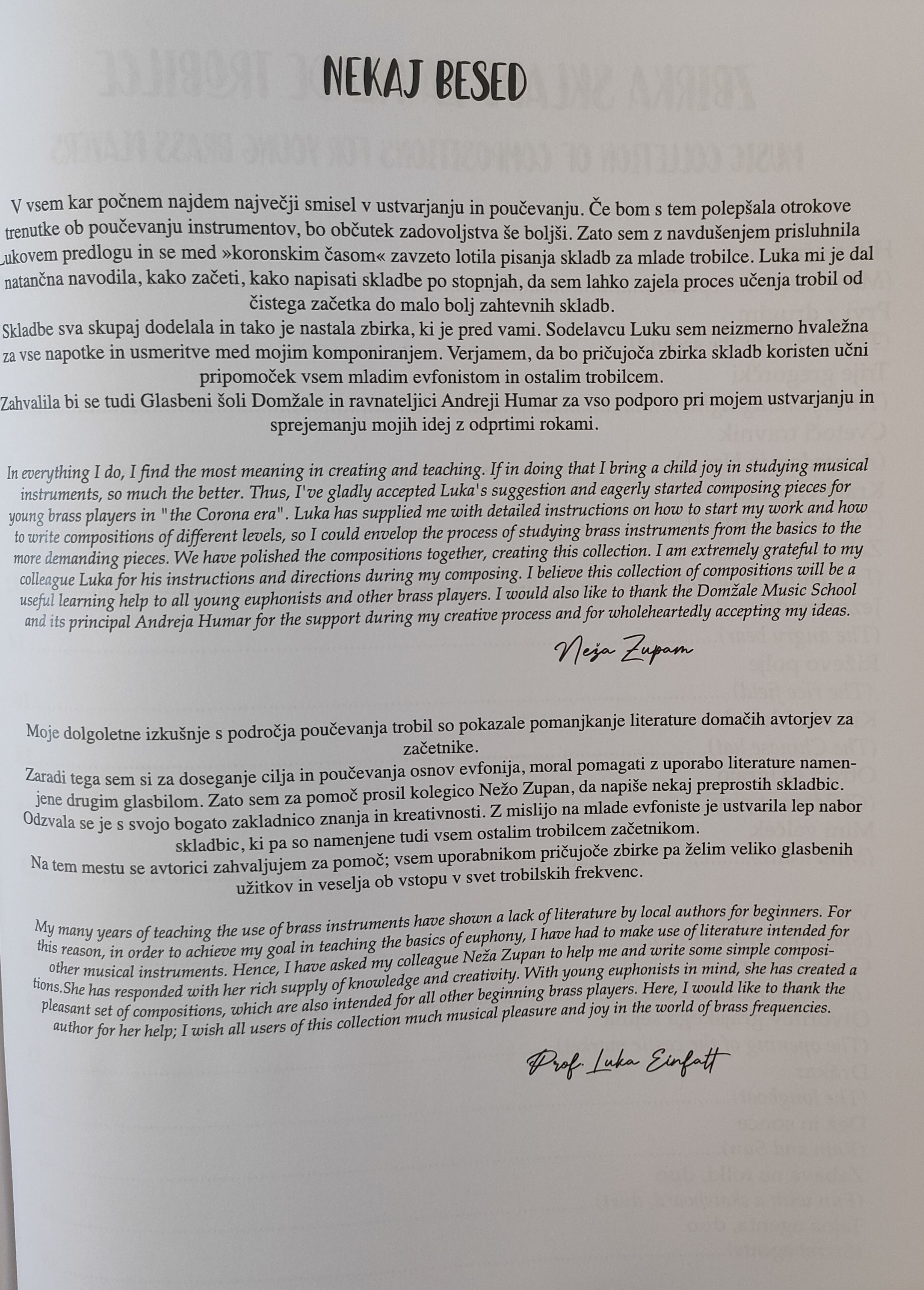 Zbirka skladb je nastala v sodelovanju z evfonistom Luko Einfaltom